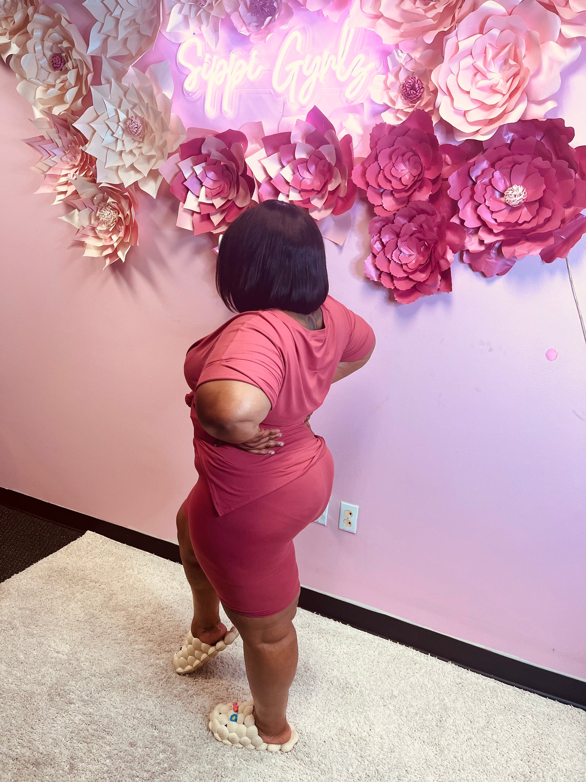 PLUS BRUSHED DTY MICROFIBER SHORT CUFF SLEEVE TOP & BIKER SHORTS SET